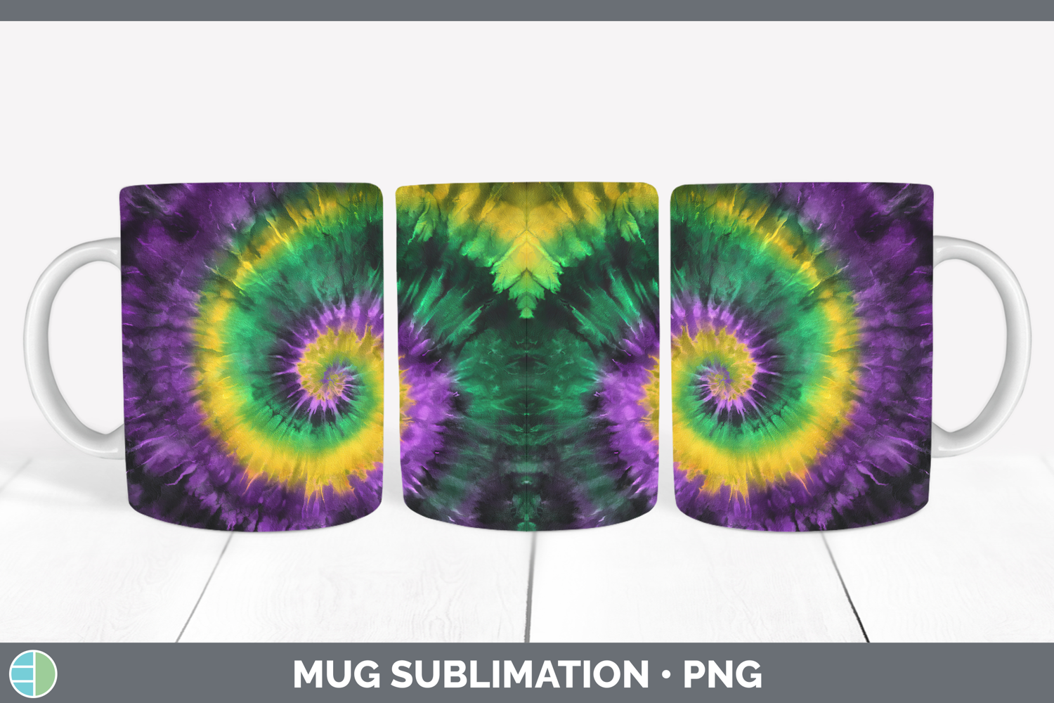 Mardi Gras Tie Dye Mug Wrap Sublimation Design