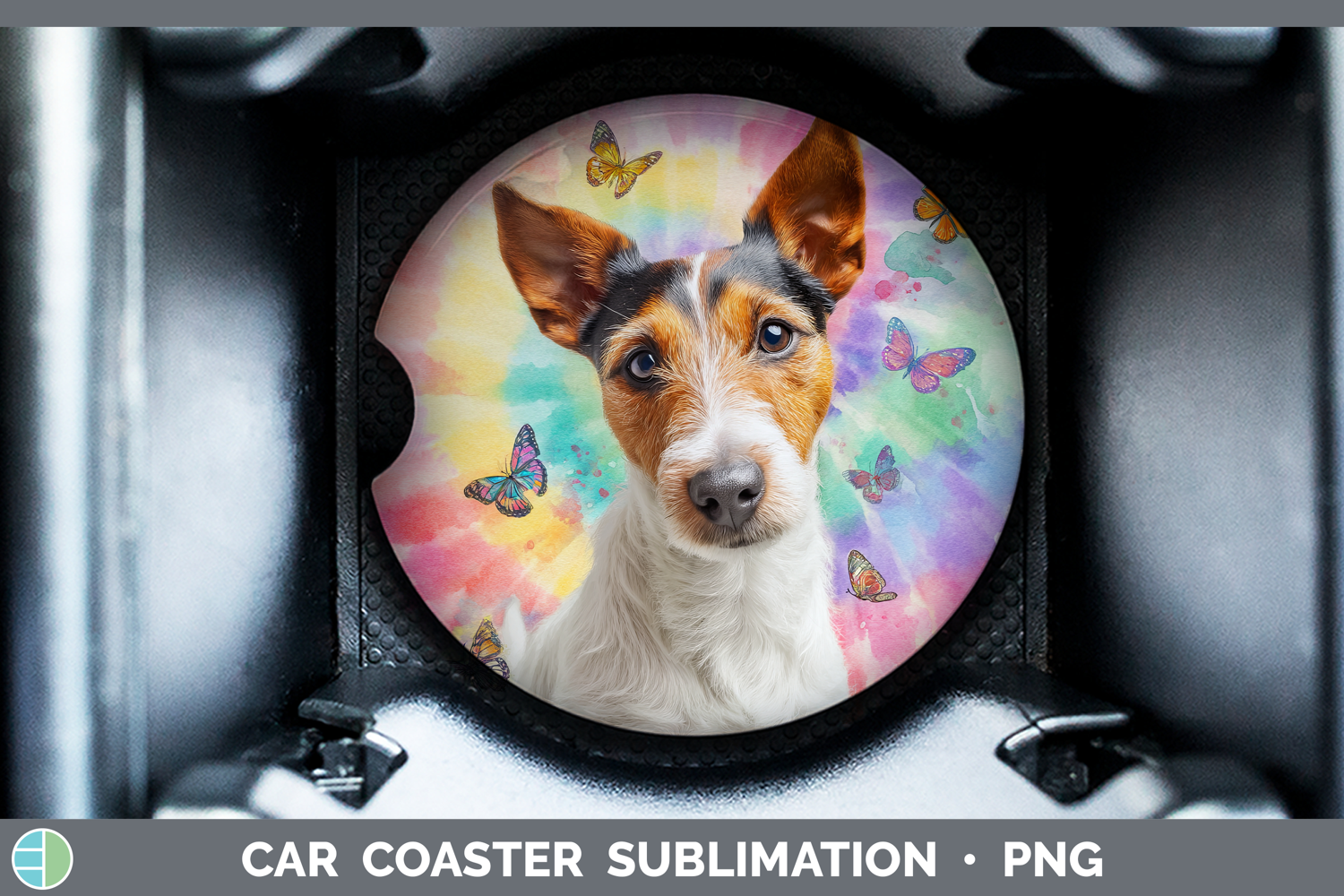 Fox Terrier Dogs 01 Tie Dye Car Coaster Sublimation Design