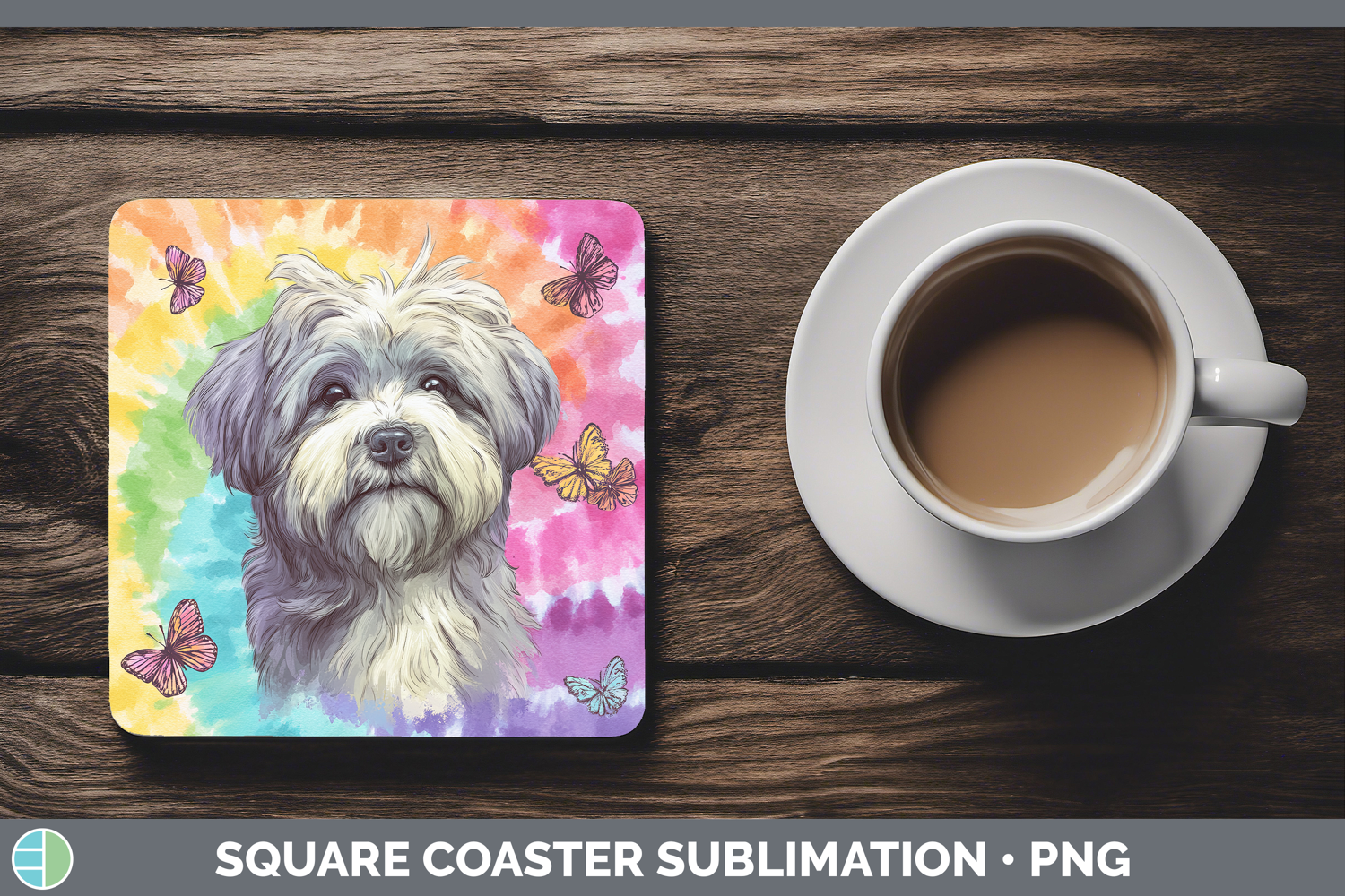 Lhasa Apso Dogs 01 Tie Dye Square Coaster Sublimation Design