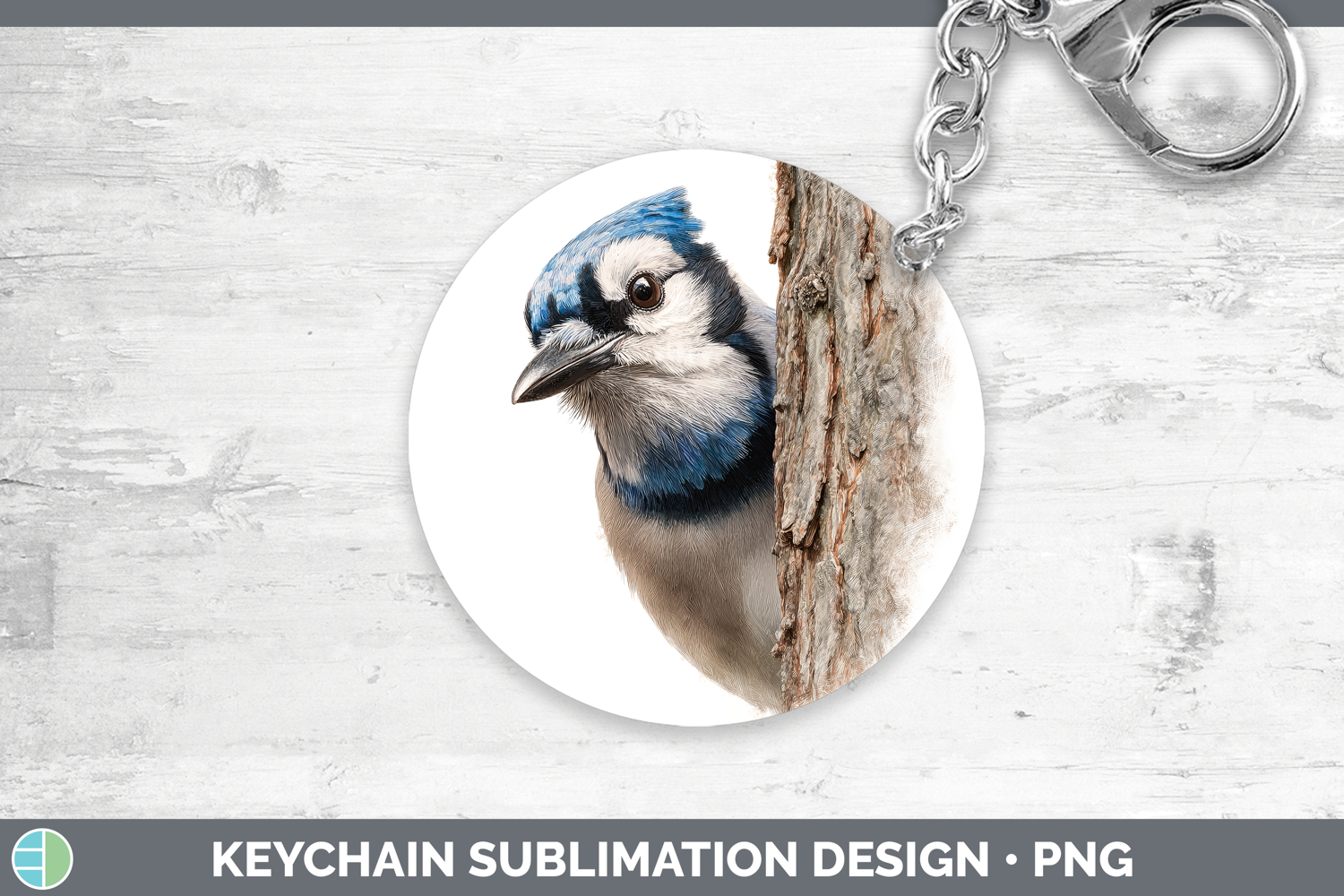 Blue Jay Birds Tree Peek Keychain Sublimation Design
