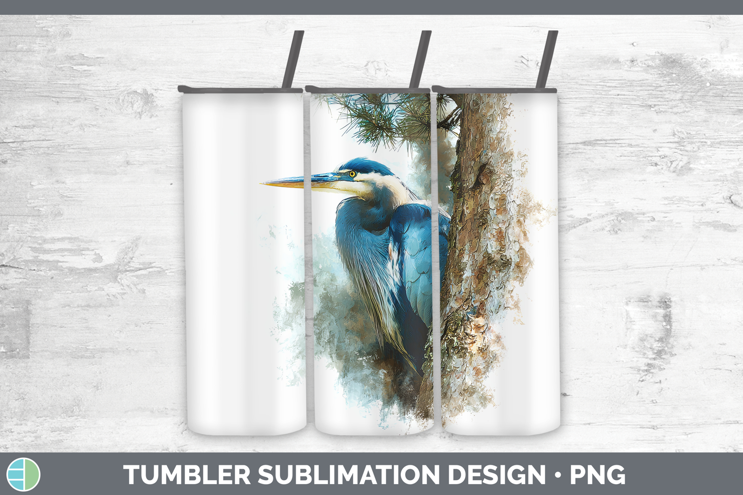 Great Blue Heron Birds Tree Peek Tumbler Sublimation Design