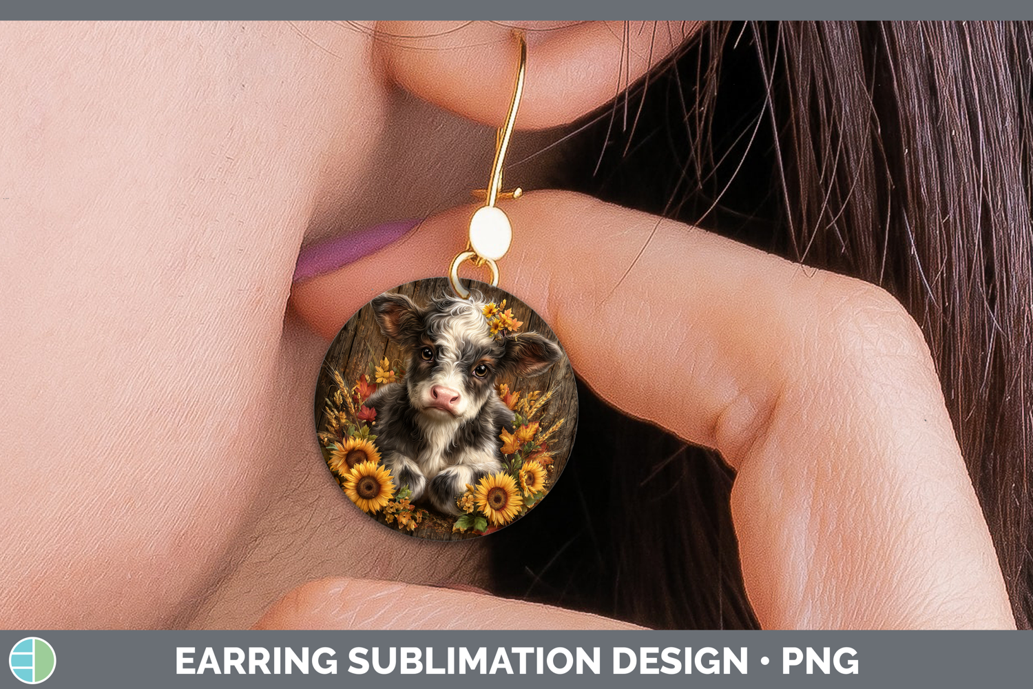 Cow Farm Rustic Autumn Round Earrings Sublimation Design
