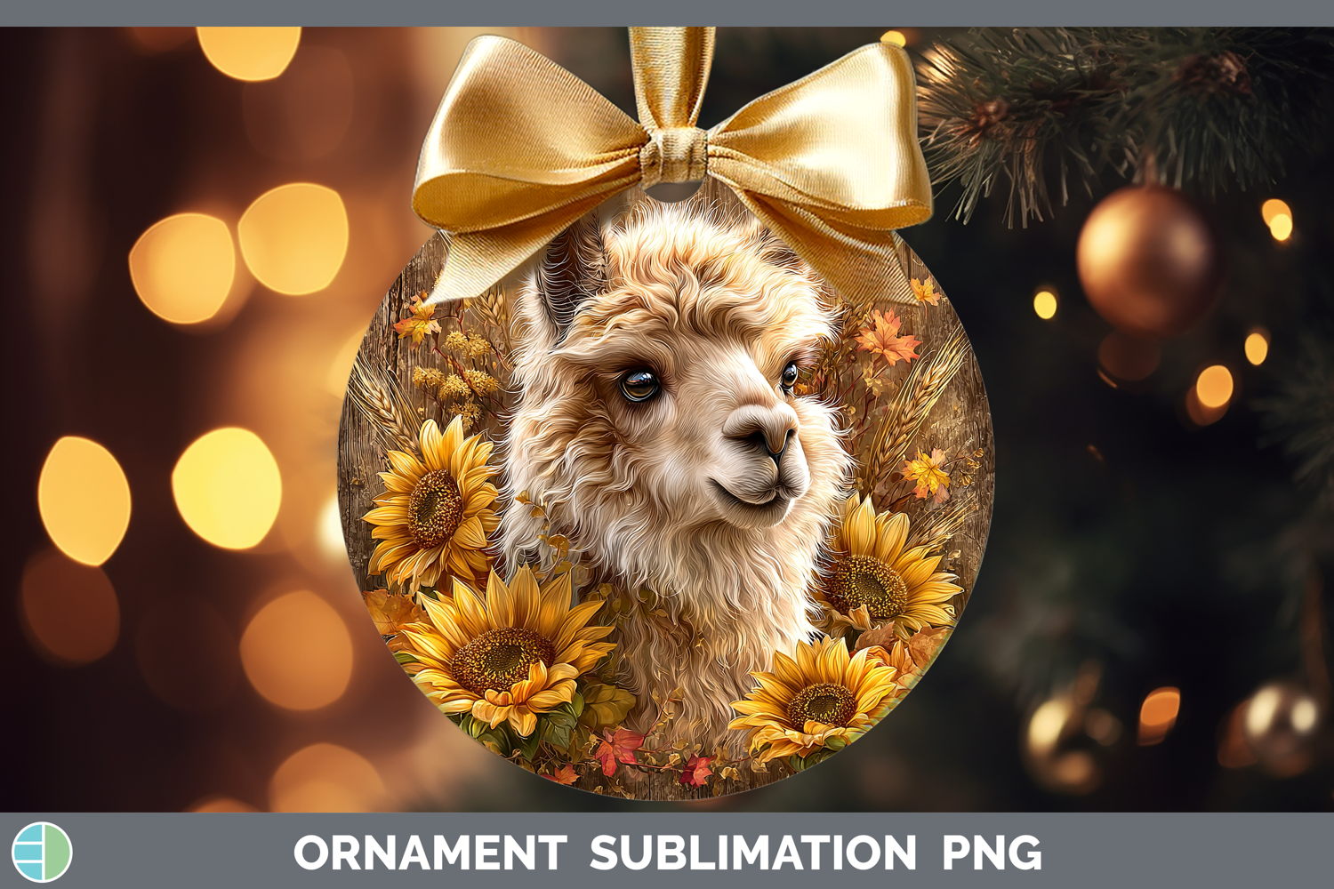 LLama Farm Rustic Autumn Ornament Sublimation Design