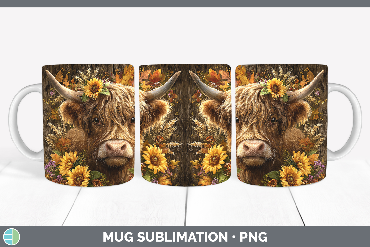 Similar Design Products to Highland Cow Farm Rustic Autumn Mug Wrap Sublimation Design