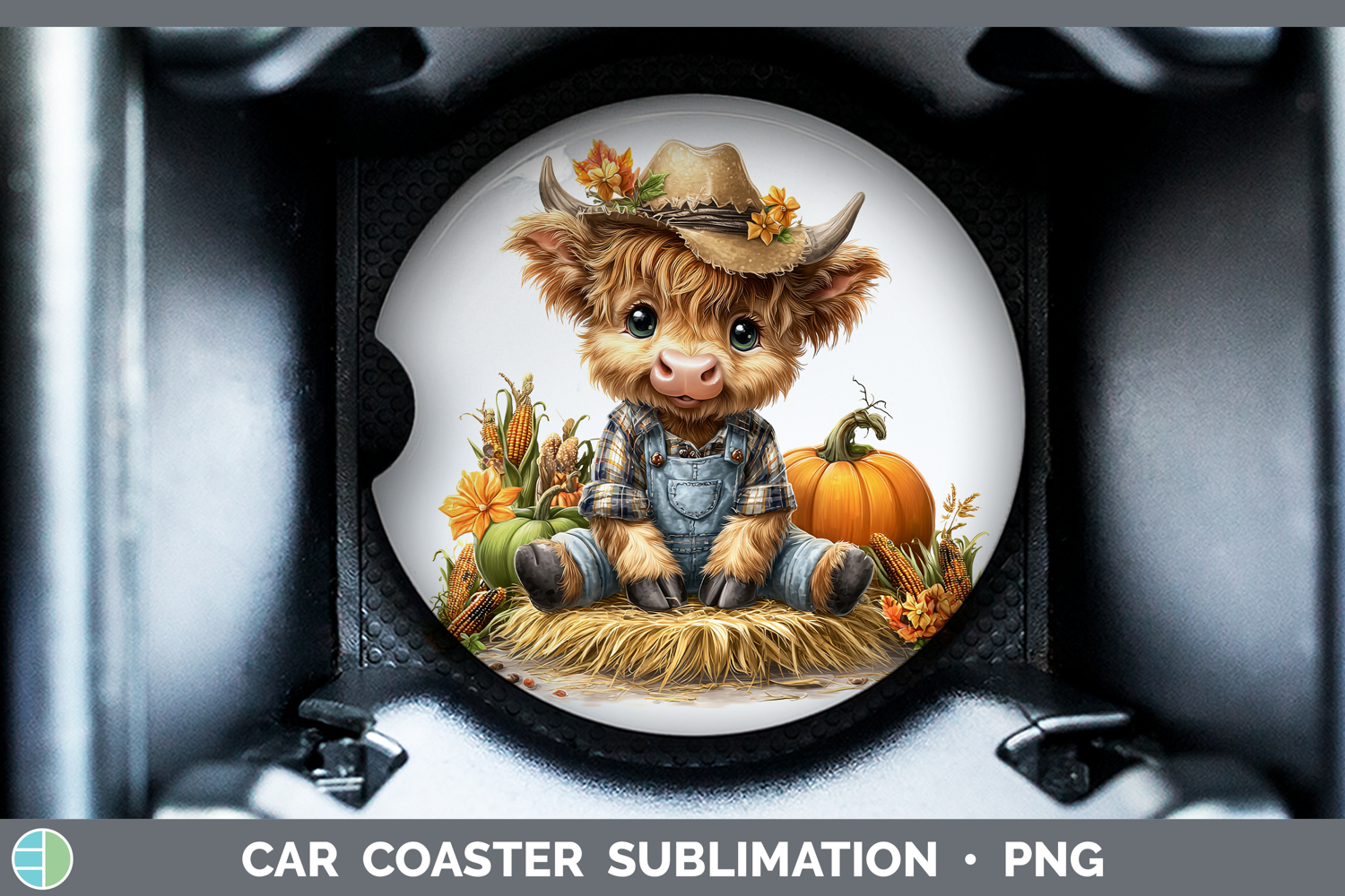 Highland Cow Farm Thanksgiving Overalls Car Coaster Sublimat