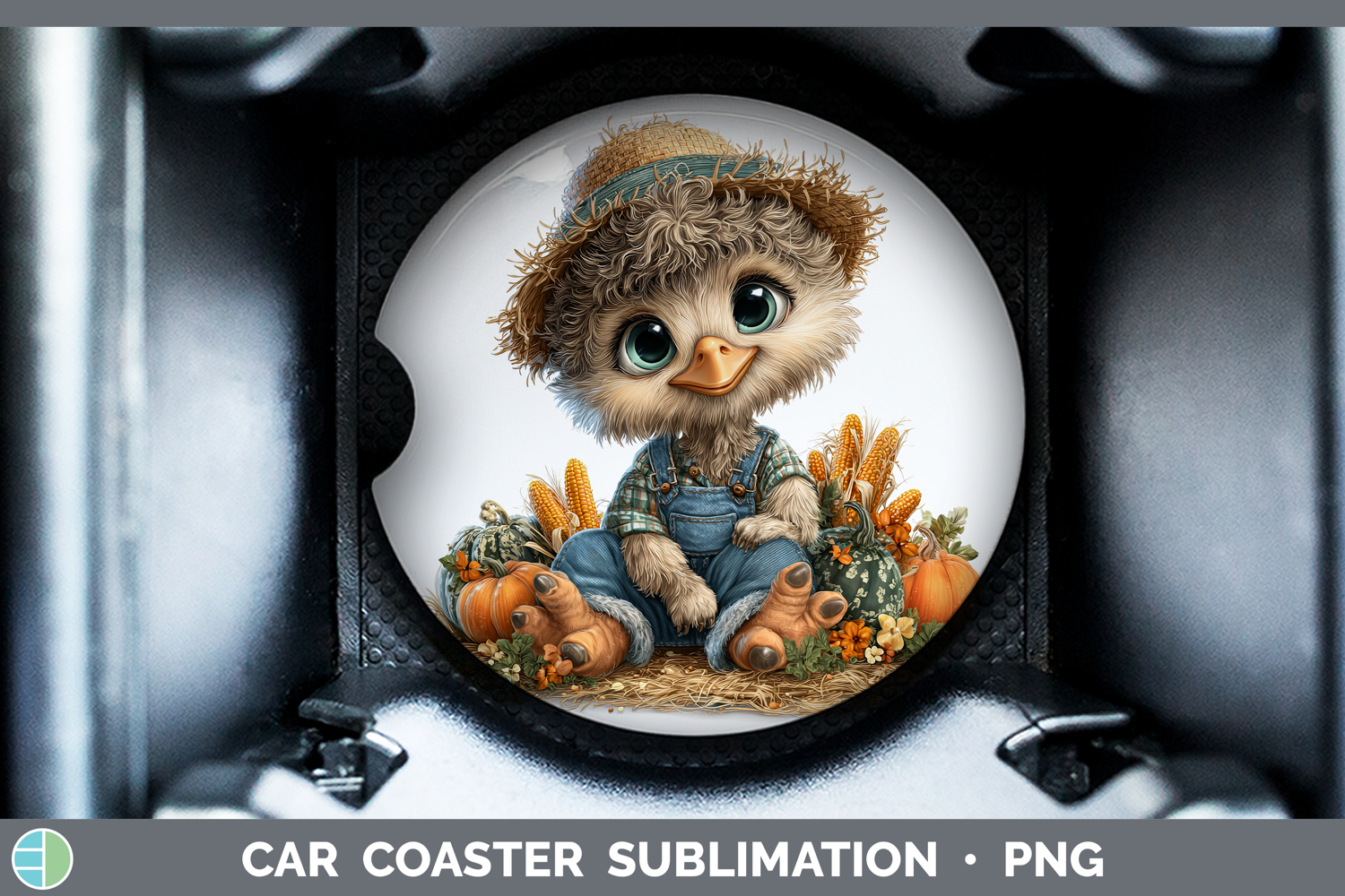 Emu Farm Thanksgiving Overalls Car Coaster Sublimation Desig