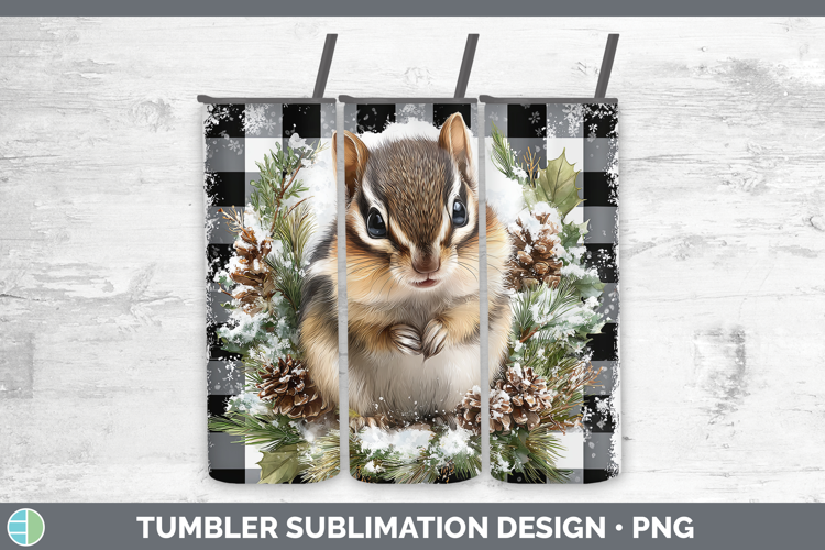 Chipmunk Woodland Checker Christmas Tumbler Sublimation Desi