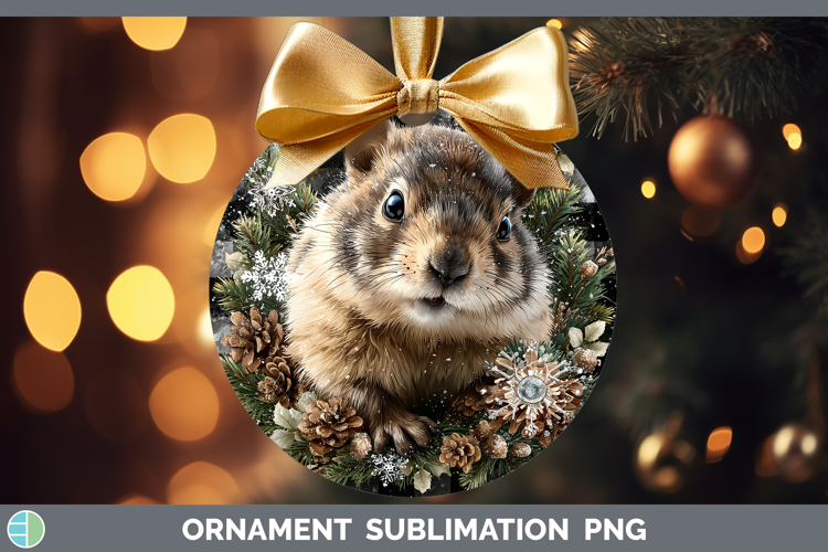 Groundhog Woodland Checker Christmas Ornament Sublimation De