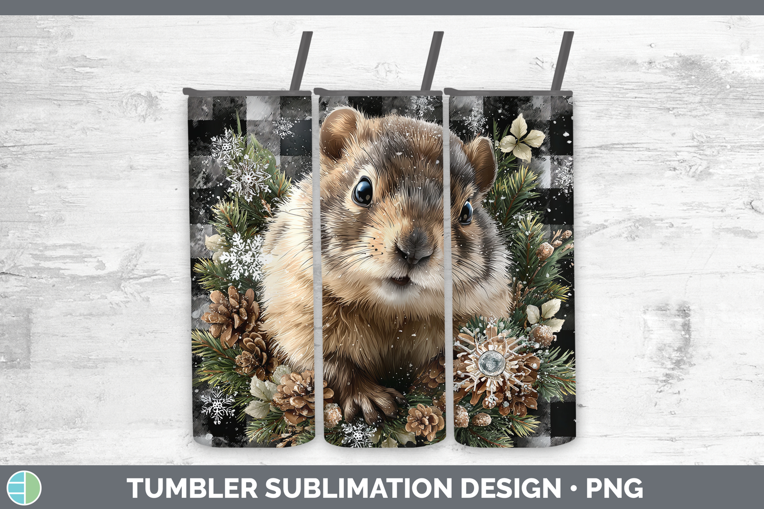 Groundhog Woodland Checker Christmas Tumbler Sublimation Des