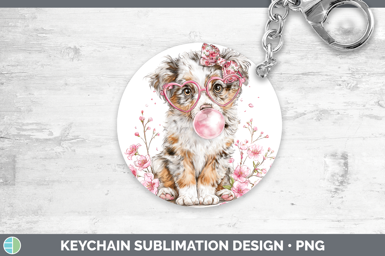 Australian Shepherd Dogs 02 Pink Bubble Gum Keychain Sublima