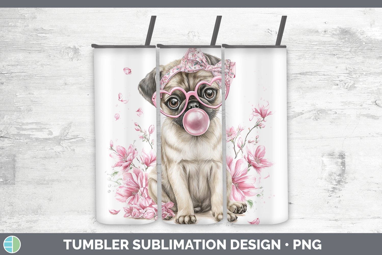 Pug Dogs 02 Pink Bubble Gum Tumbler Sublimation Design