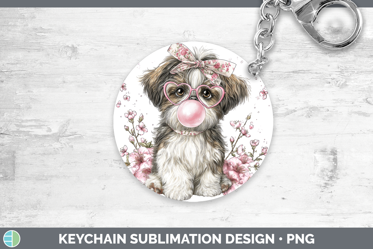 Shih Tzu Dogs 02 Pink Bubble Gum Keychain Sublimation Design