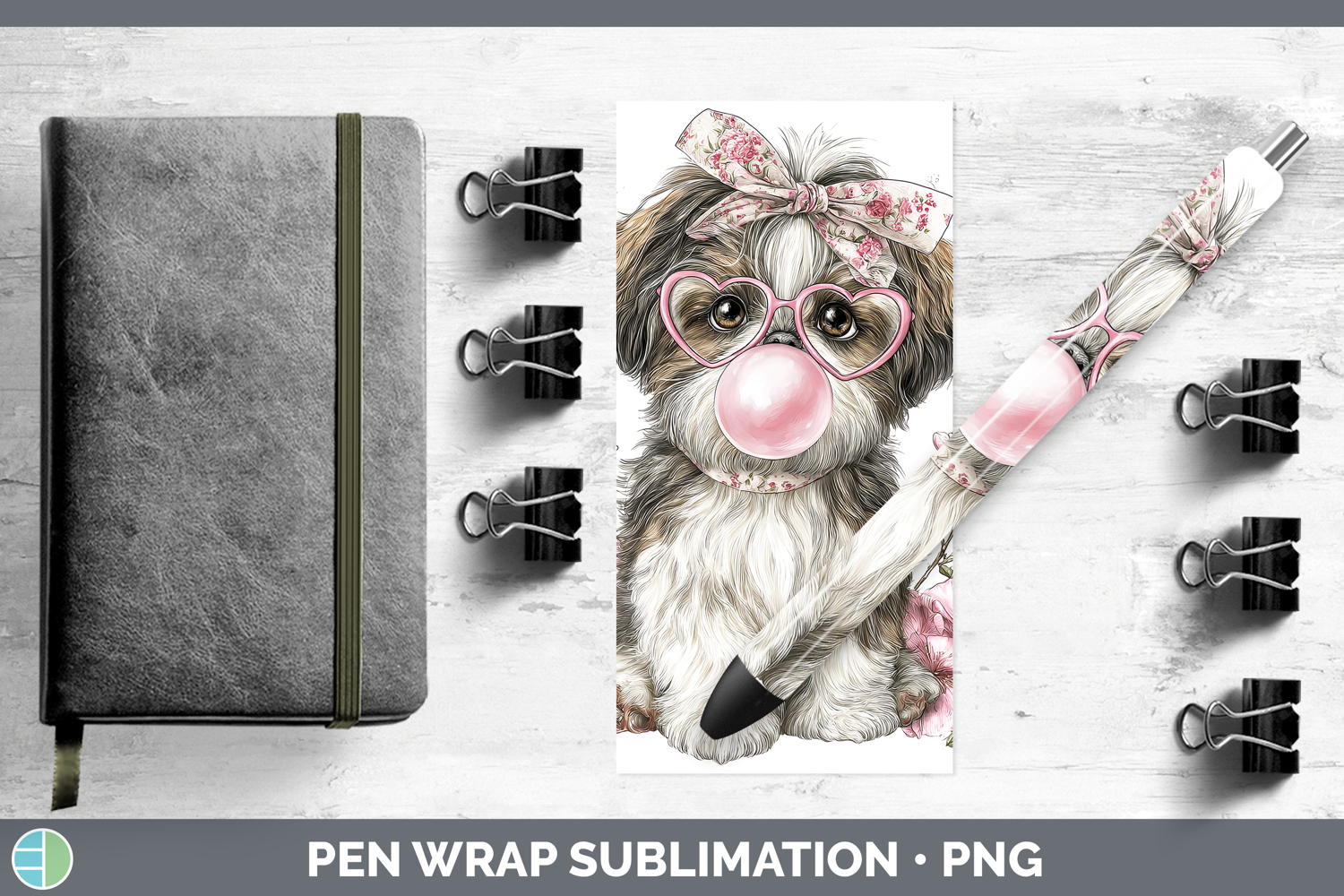 Shih Tzu Dogs 02 Pink Bubble Gum Pen Wrap Sublimation Design