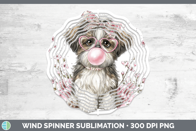 Shih Tzu Dogs 02 Pink Bubble Gum Wind Spinner Sublimation De