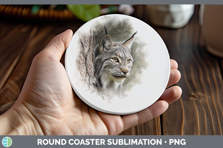 Similar Design Products to Canada Lynx Wild Cats Tree Peek Round Coaster Sublimation De