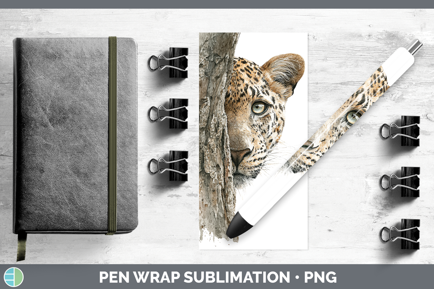 Leopard Wild Cats Tree Peek Pen Wrap Sublimation Design