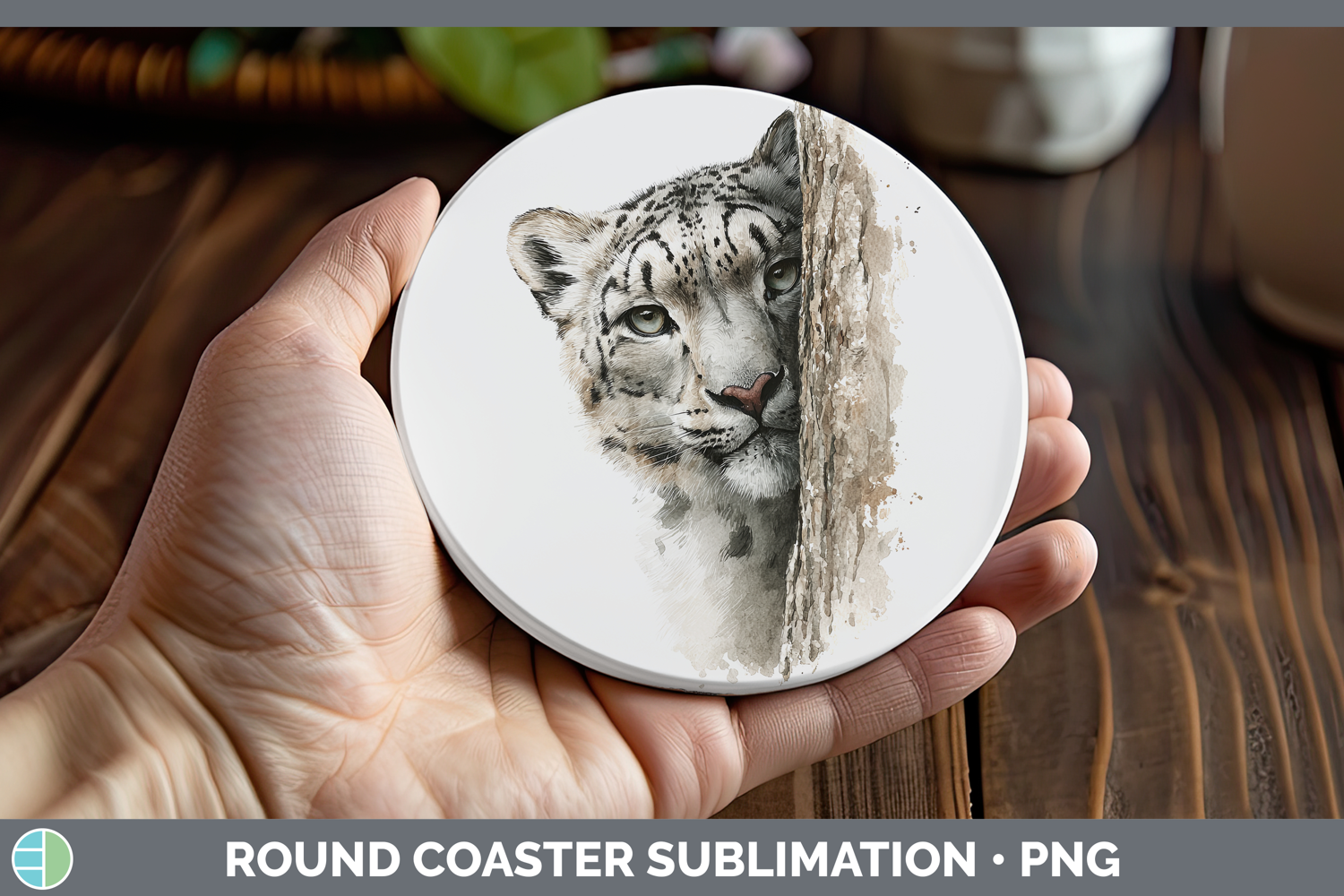 Leopard Snow Wild Cats Tree Peek Round Coaster Sublimation D