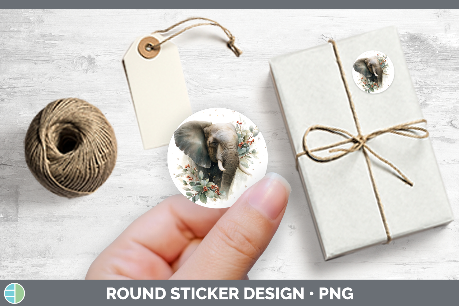 Elephant Safari Christmas Botanicals Stickers Design