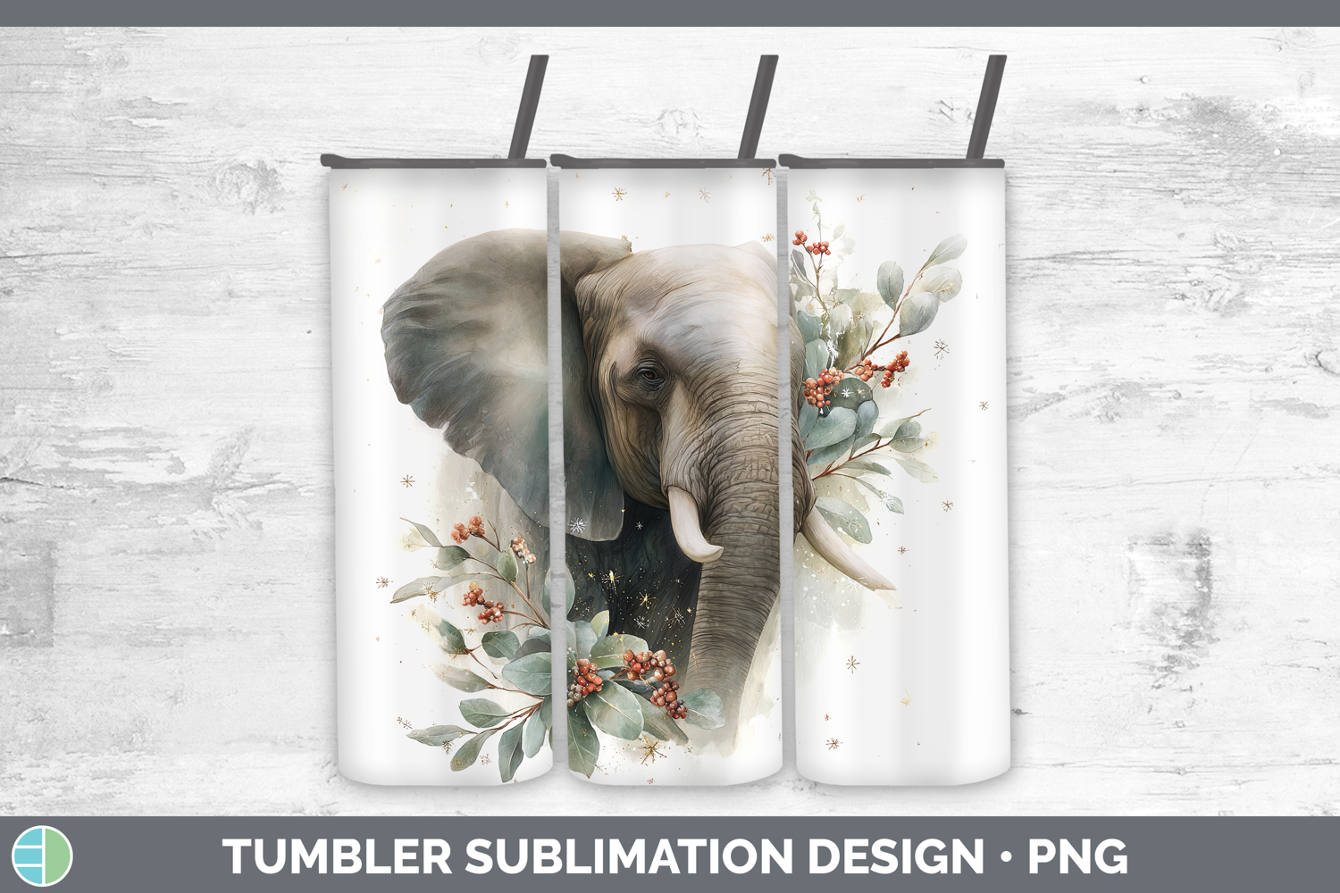 Elephant Safari Christmas Botanicals Tumbler Sublimation Des