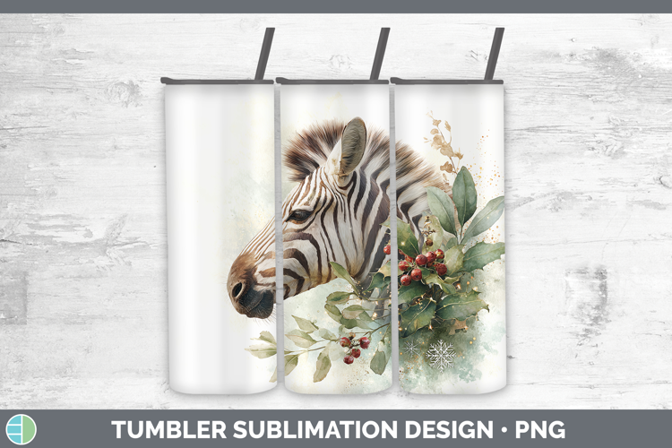 Zebra Safari Christmas Botanicals Tumbler Sublimation Design