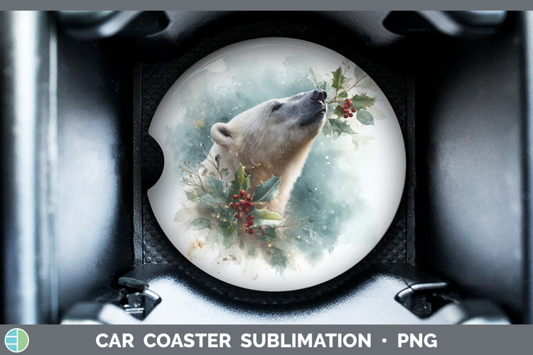 Polar Bear Safari Christmas Botanicals Car Coaster Sublimati