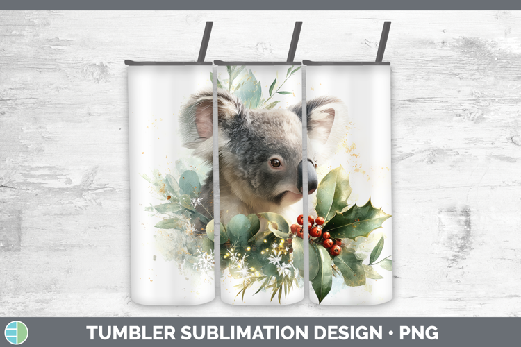 Koala Safari Christmas Botanicals Tumbler Sublimation Design