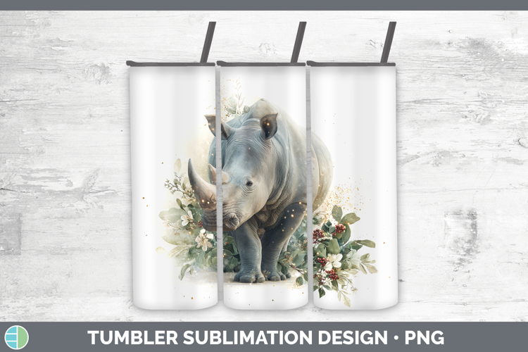 Rhino Safari Christmas Botanicals Tumbler Sublimation Design