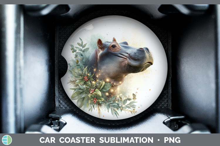 Hippo Safari Christmas Botanicals Car Coaster Sublimation De