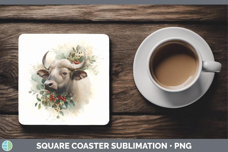 Buffalo Safari Christmas Botanicals Square Coaster Sublimati