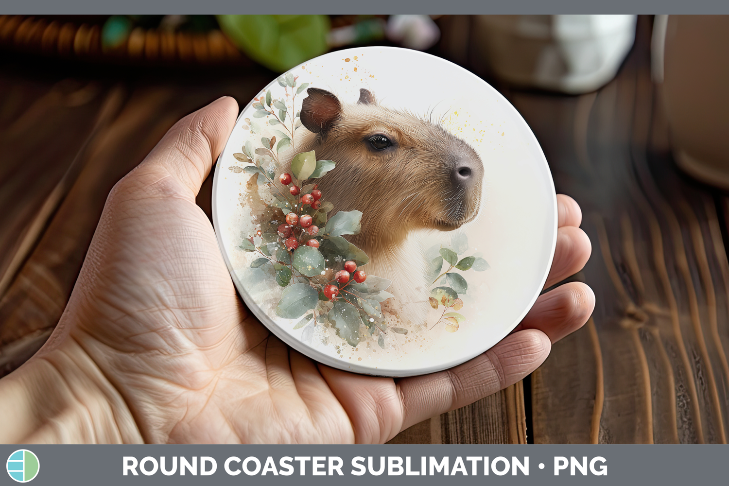 Capybara Safari Christmas Botanicals Round Coaster Sublimati
