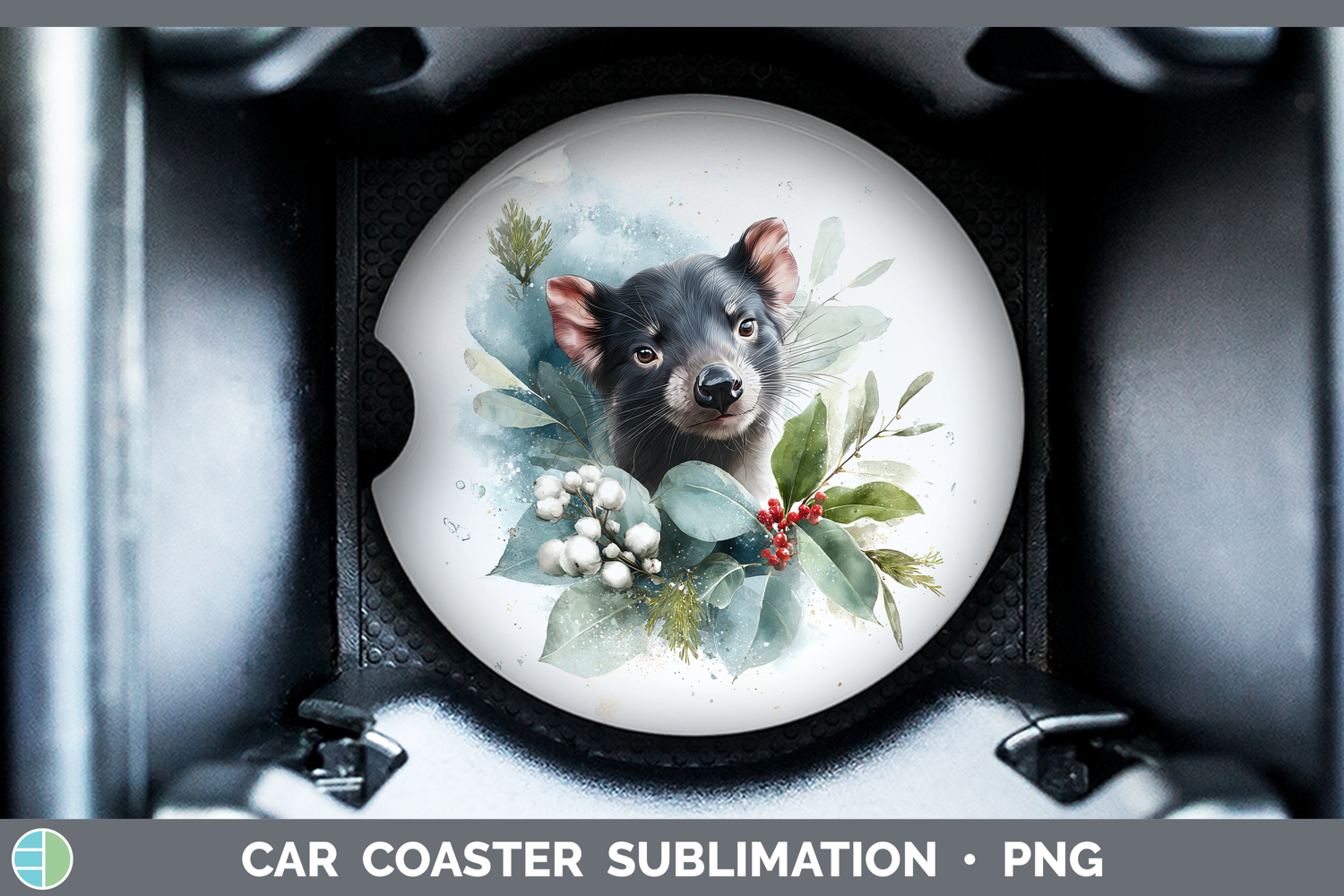 Tasmanian Devil Safari Christmas Botanicals Car Coaster Subl