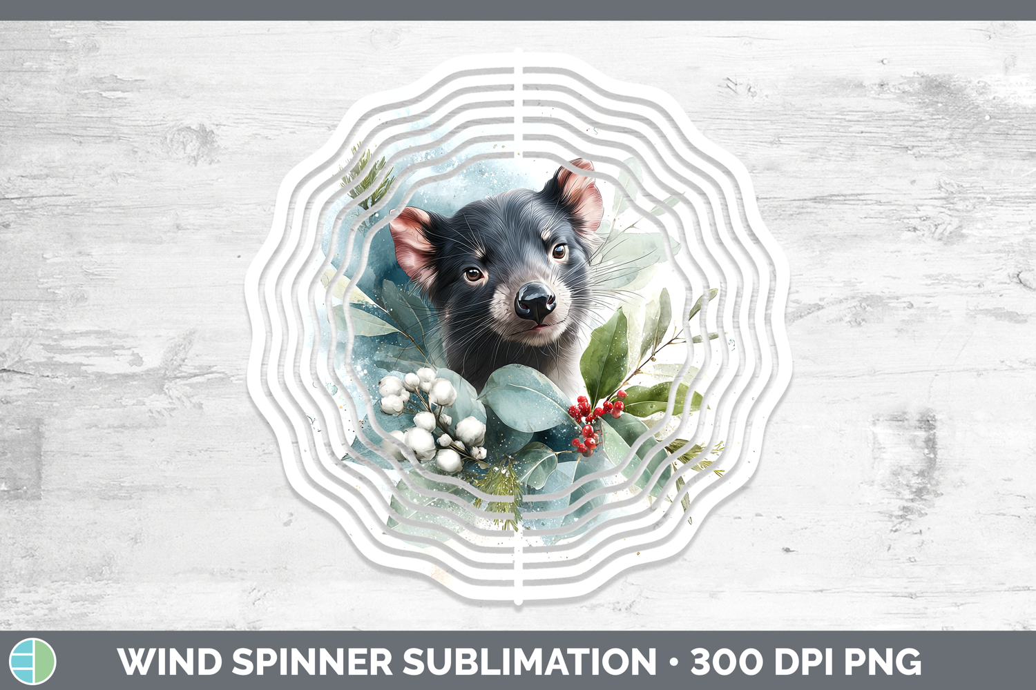 Tasmanian Devil Safari Christmas Botanicals Wind Spinner Sub
