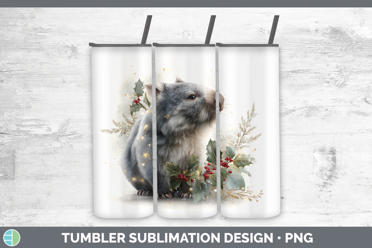Wombat Safari Christmas Botanicals Tumbler Sublimation Desig
