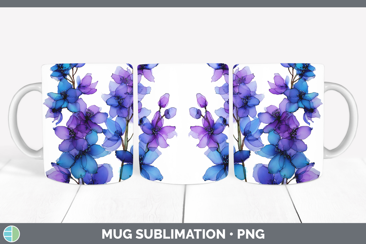 Delphinium Flowers 01 Alcohol Ink Mug Wrap Sublimation Desig