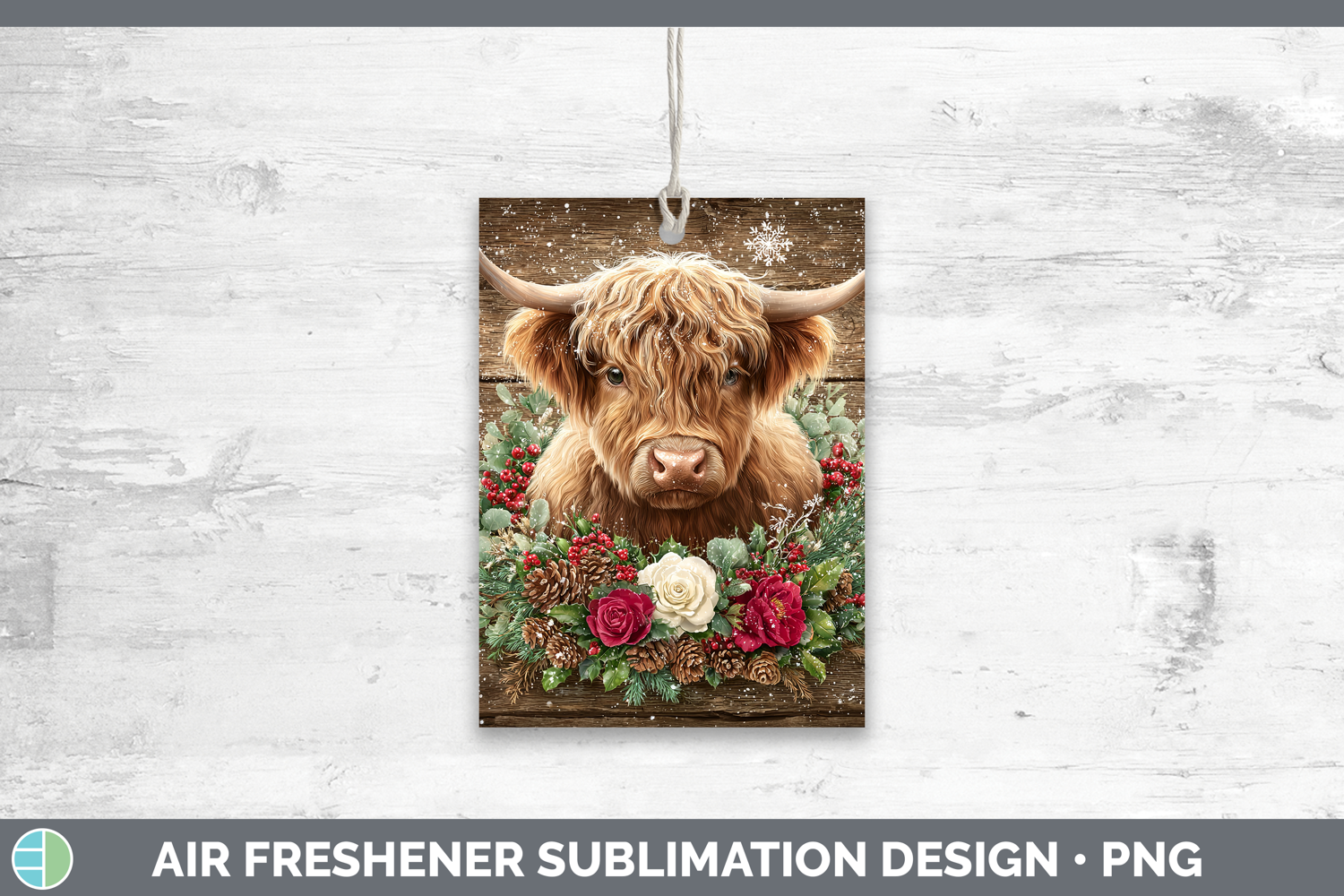 Highland Cow Animals Rustic Christmas Air Freshener Sublimat