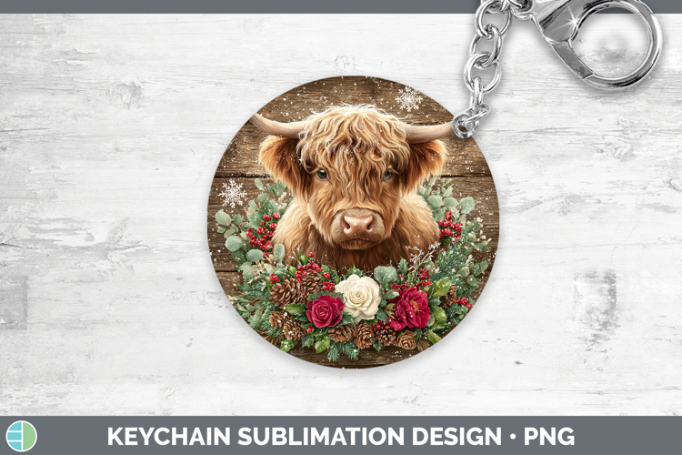 Highland Cow Animals Rustic Christmas Keychain Sublimation D