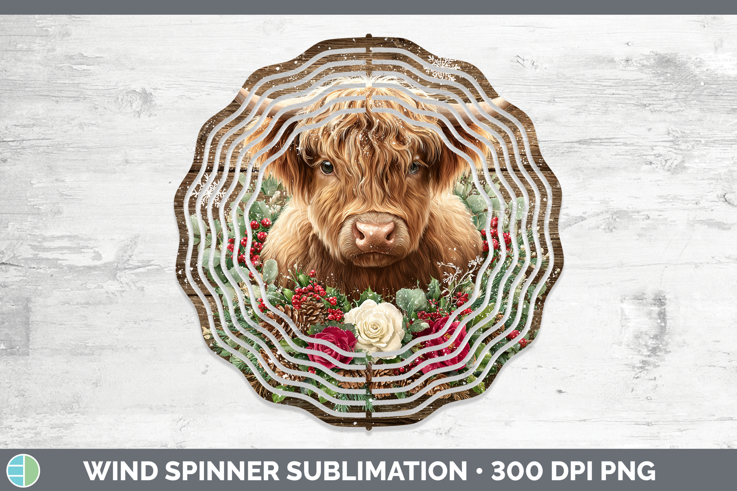 Highland Cow Animals Rustic Christmas Wind Spinner Sublimati