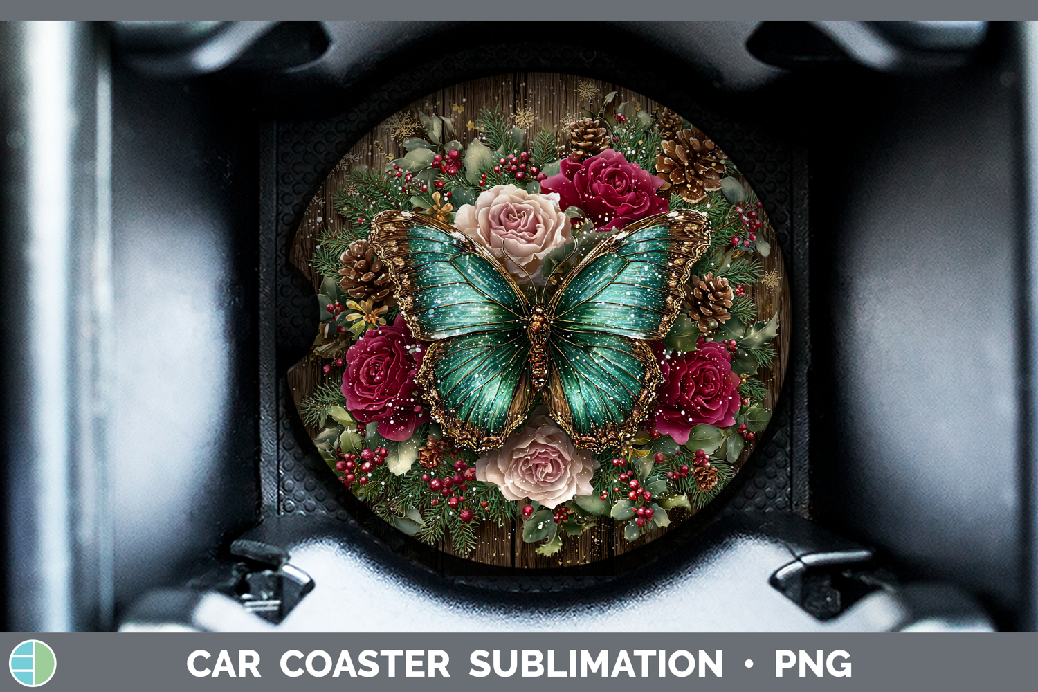 Similar Design Products to Butterfly Animals Rustic Christmas Car Coaster Sublimation D