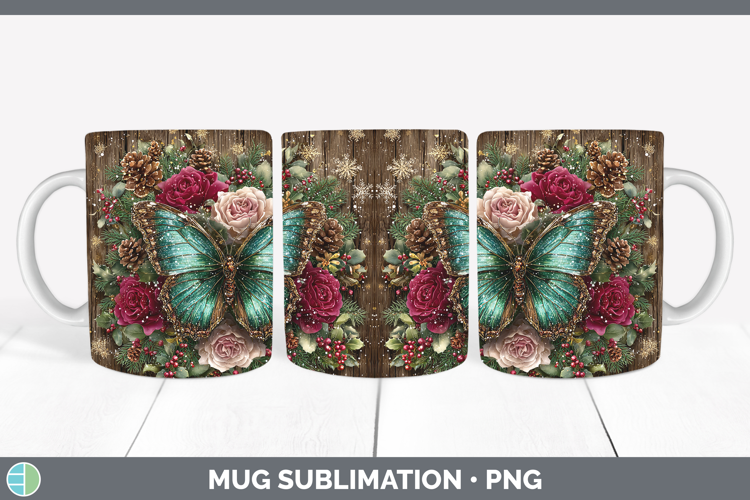 Butterfly Animals Rustic Christmas Mug Wrap Sublimation Desi