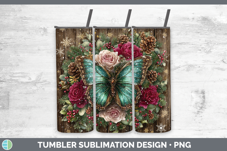 Butterfly Animals Rustic Christmas Tumbler Sublimation Desig