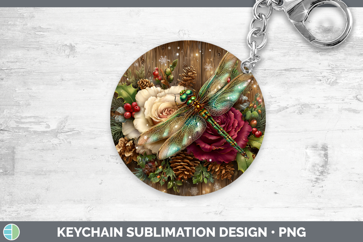 Dragonfly Animals Rustic Christmas Keychain Sublimation Desi