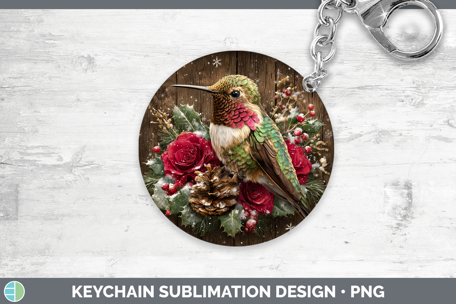 Hummingbird Animals Rustic Christmas Keychain Sublimation De