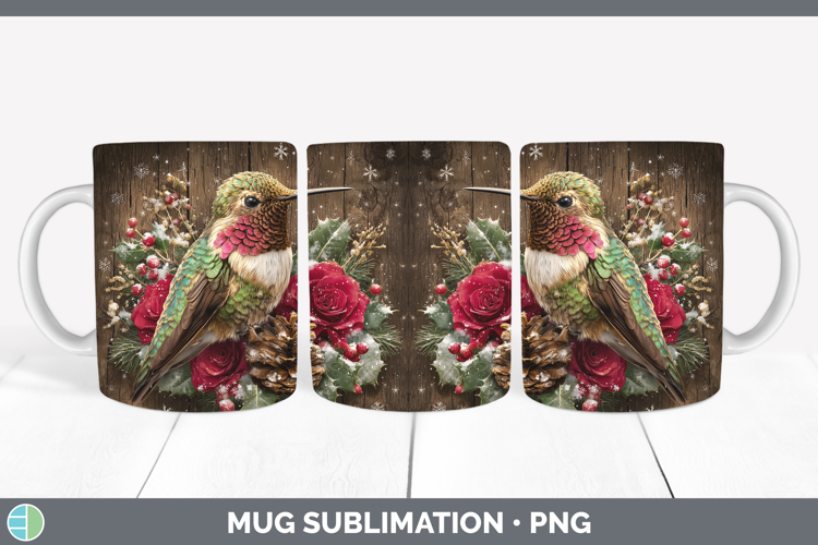 Hummingbird Animals Rustic Christmas Mug Wrap Sublimation De