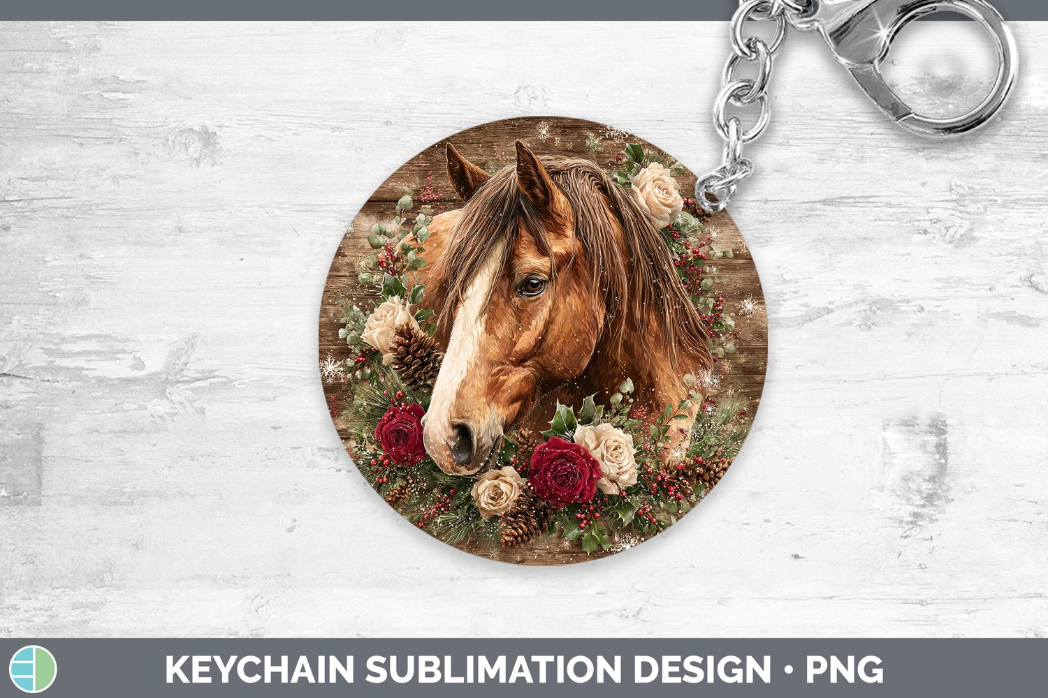 Horse Animals Rustic Christmas Keychain Sublimation Design