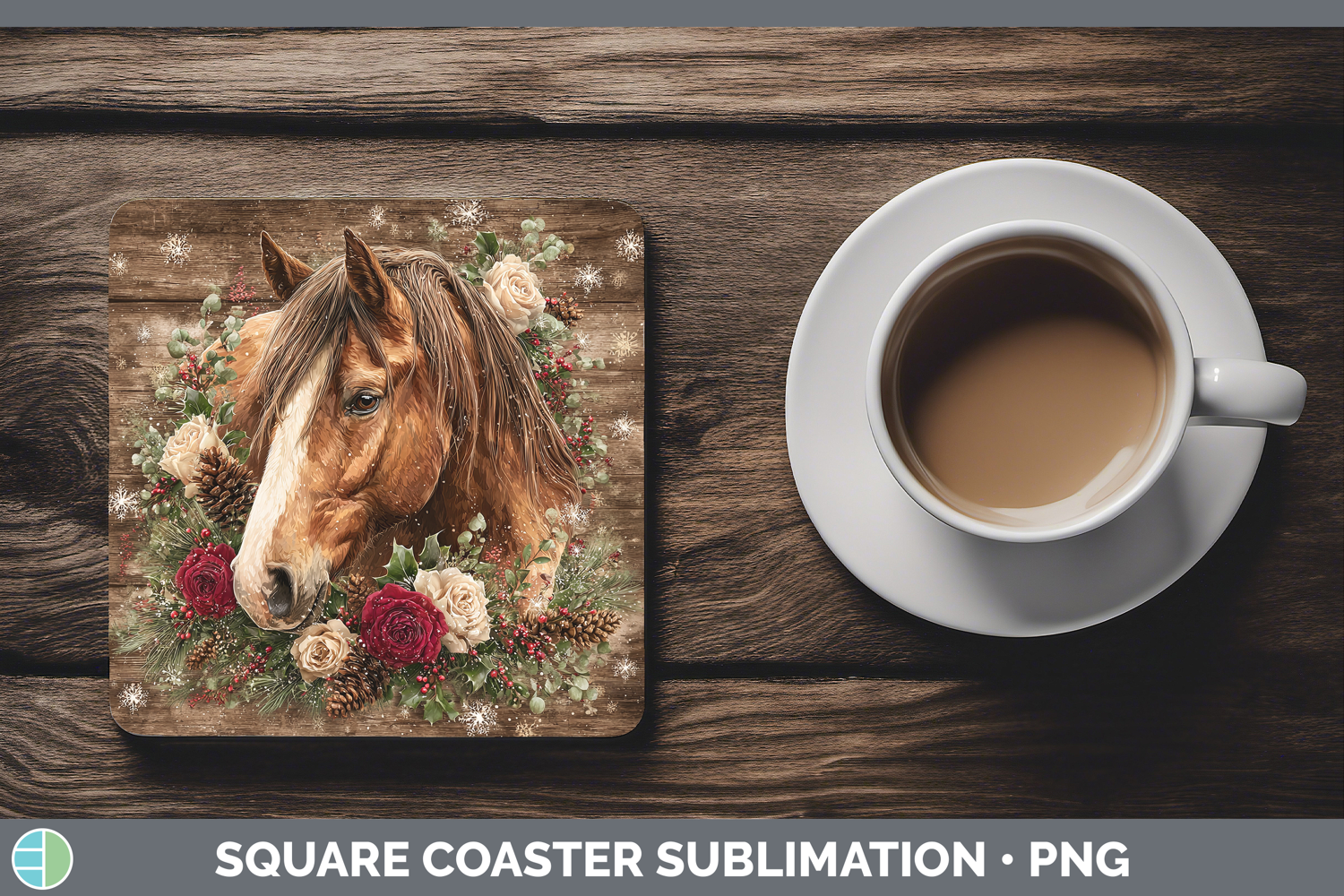 Horse Animals Rustic Christmas Square Coaster Sublimation De