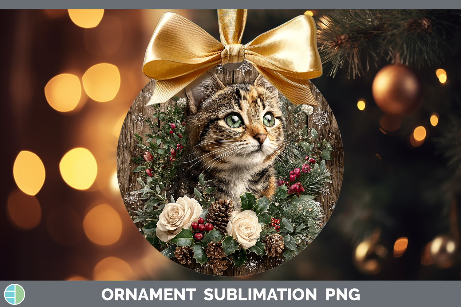 Kitten Animals Rustic Christmas Ornament Sublimation Design