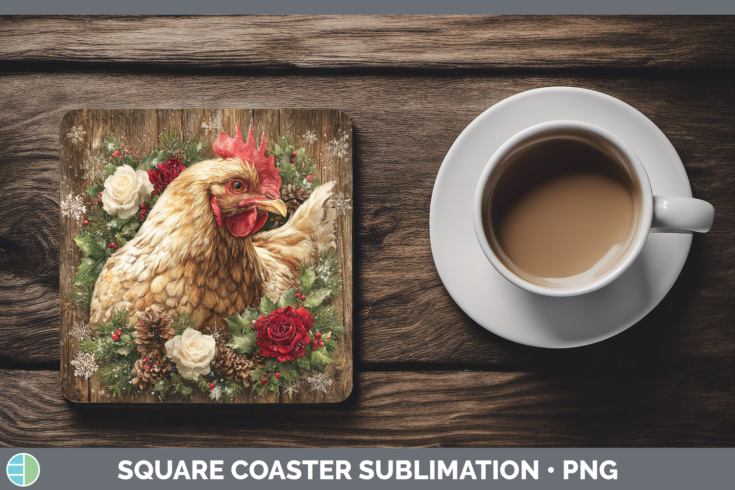Chicken Animals Rustic Christmas Square Coaster Sublimation