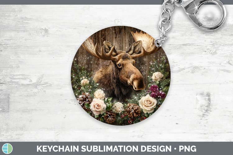 Moose Animals Rustic Christmas Keychain Sublimation Design
