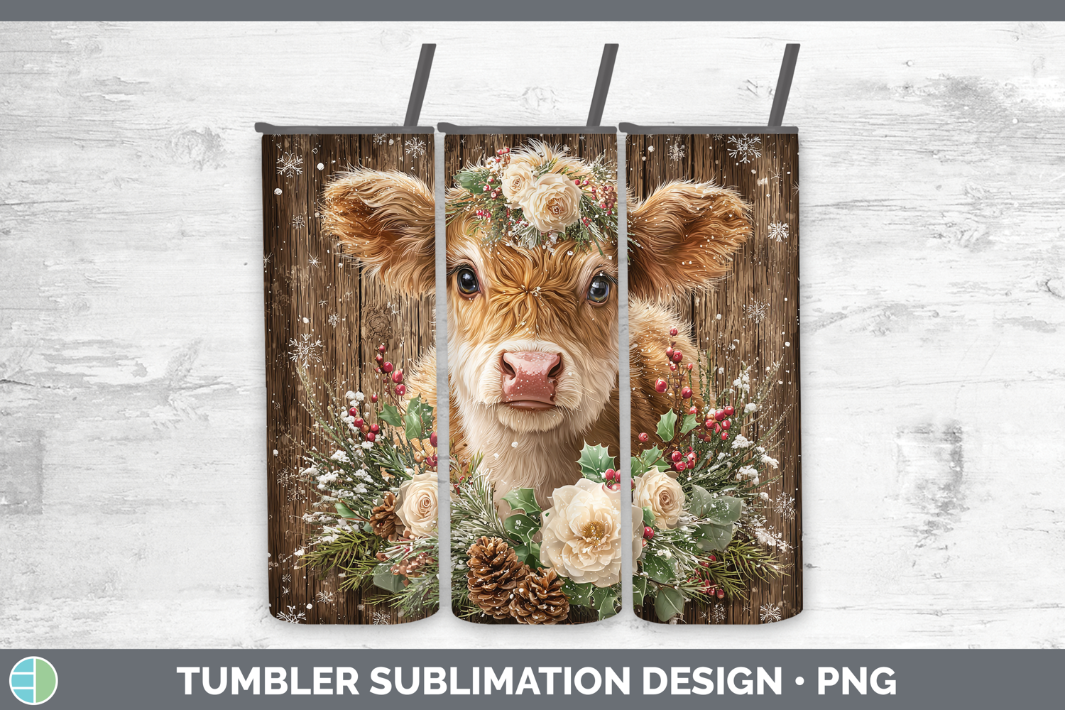 Similar Design Products to Cow Animals Rustic Christmas Tumbler Sublimation Design