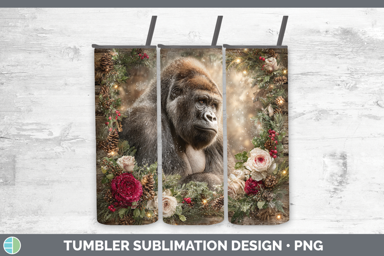 Gorilla Animals Rustic Christmas Tumbler Sublimation Design